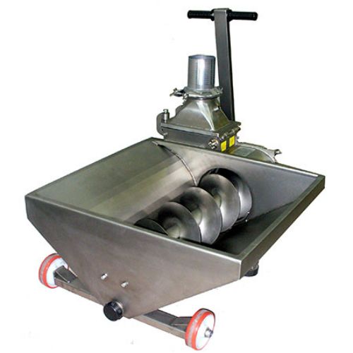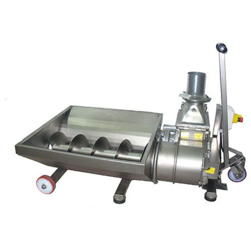 El bajo nº de giros de la parte interna de la bomba evita la oxidación, emulsión y estrujado del producto. Equipada con sinfín de entrada y tolva de recogida del producto.