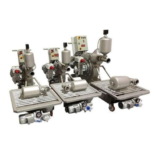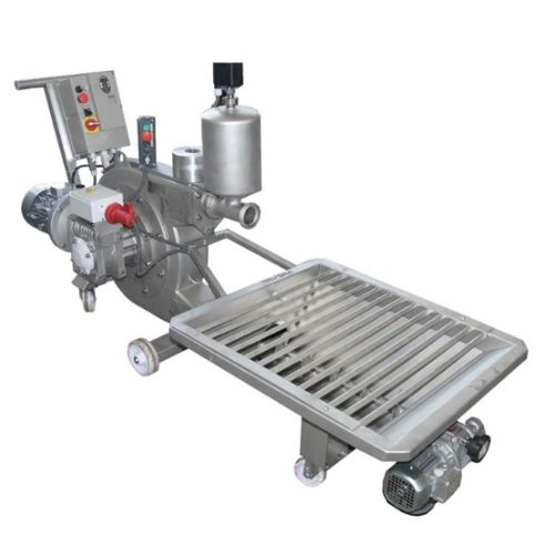 - Motorización completa con motorreductor mecánico. Limitación de las revoluciones máximas del rotor para asegurar un bajo consumo de la manguera de goma y un bombeo delicado para evitar la disgregación del producto bombeado especialmente en el caso de pieles u orujos fermentados.