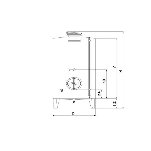 | VOLUMEN (LITROS) | D v mm | H total mm | H cilindro mm | H patas mm | H mm Fondo hasta termómetro | H mm Fondo hasta puerta | CÓDIGO |