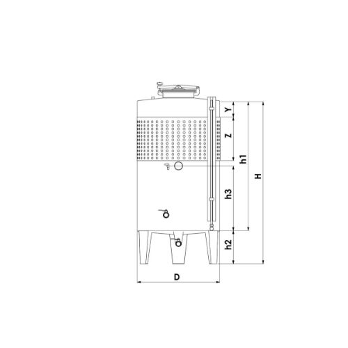 | VOLUMEN (LITROS) | D v mm | H total mm (H) | H cilindro mm (h1) | H patas mm (h2) | H mm Fondo hasta termómetro (h3) | H mm Camisa (Y) | H mm (Z) | M2 camisa | CÓDIGO |