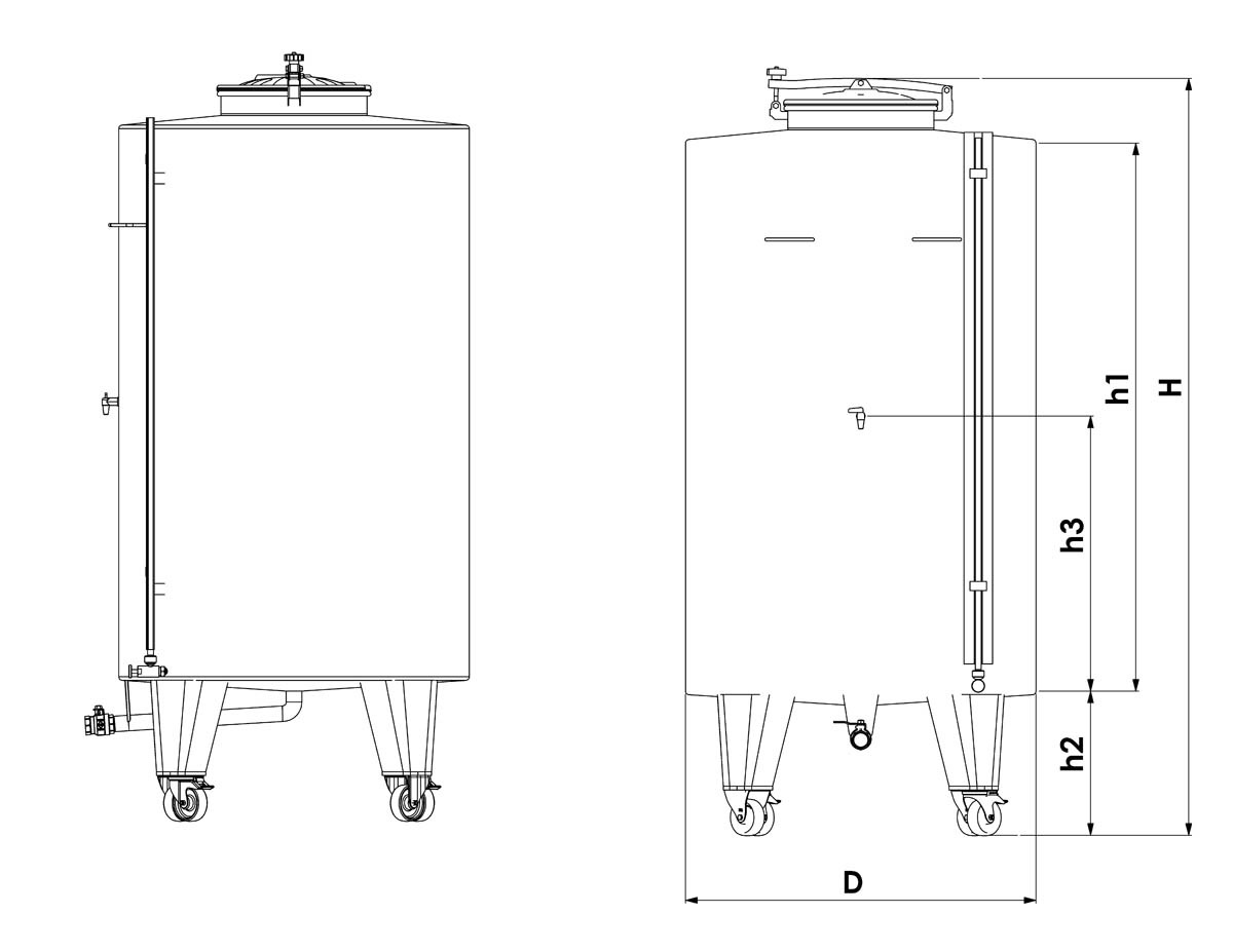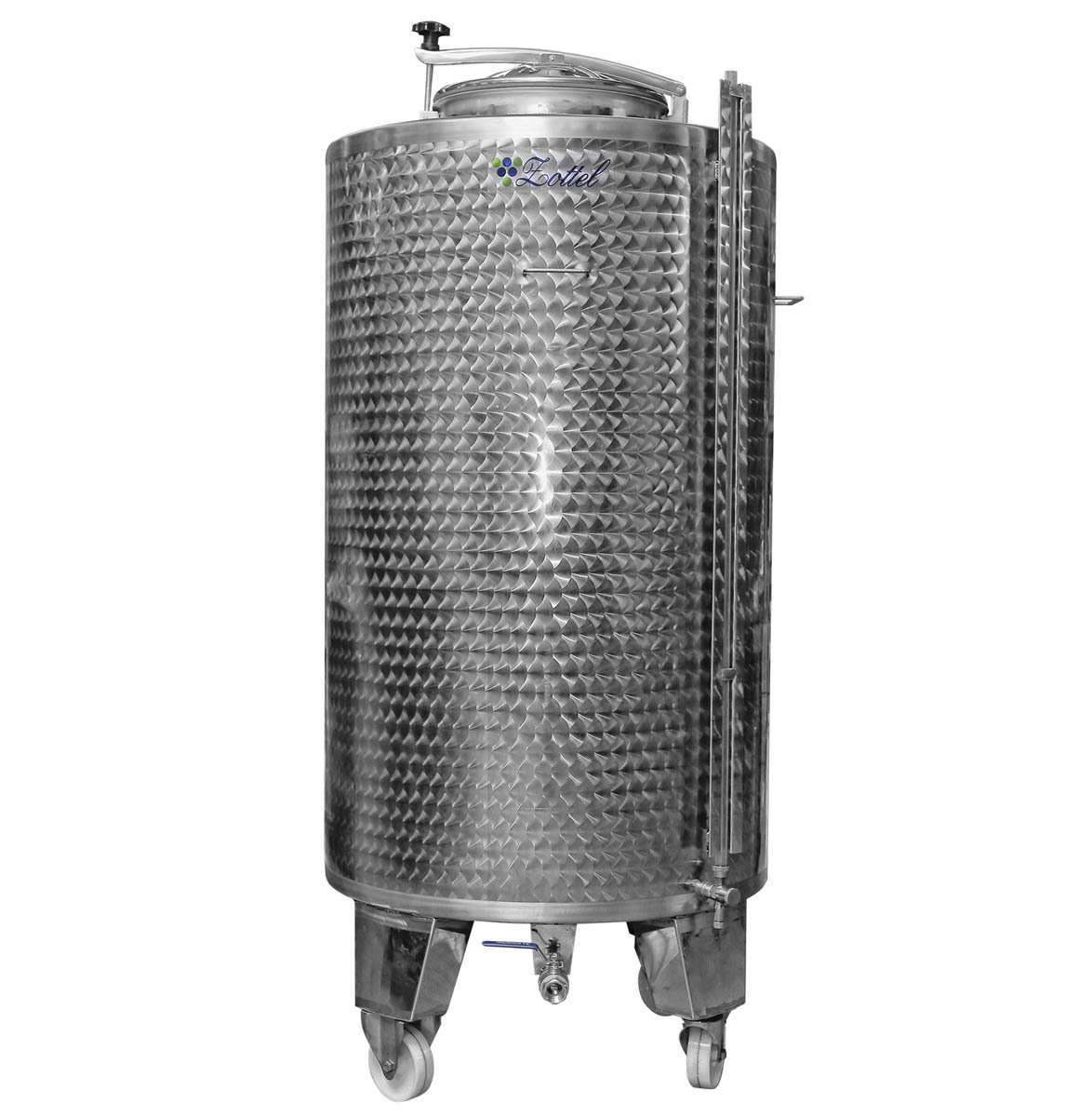 Fabricado en acero inox aisi 304, alto brillo, exterior pulido. El depósito es adecuado para el transporte y desplazamiento por la bodega. Las ruedas permiten una fácil manipulación del depósito en suelos planos.
