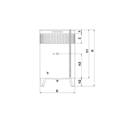 | VOLUMEN (LITROS) | D mm | H total mm | H1 cilindro mm | H2 patas mm | H3 mm Fondo hasta termó-metro | H mm Camisa | Y mm