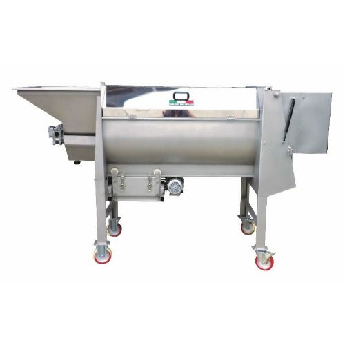 La despalilladora-estrujadora, de tipo horizontal, consta de una tolva de carga con un tornillo independiente, eje batidor y tambor regulados con diferentes velocidades por inverter.