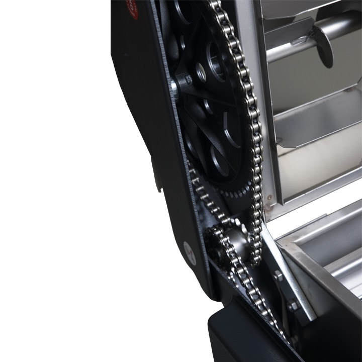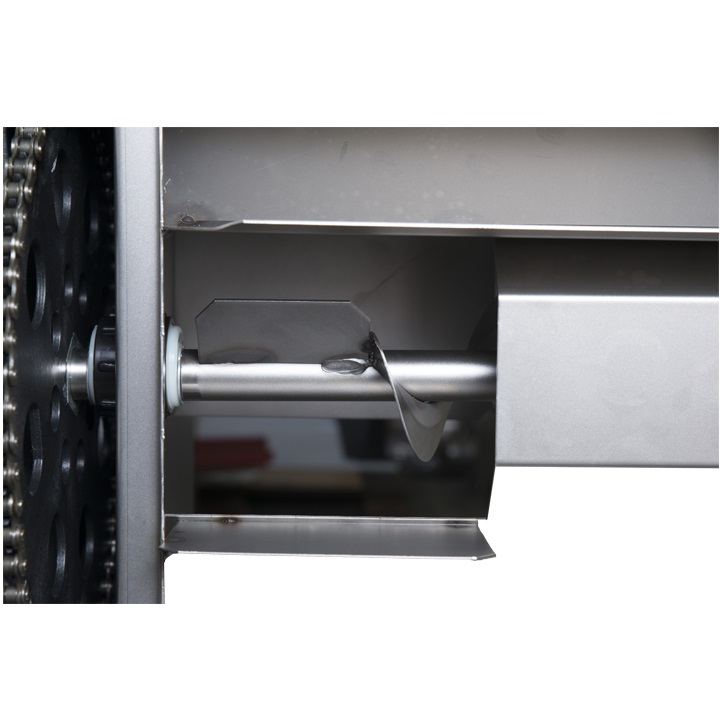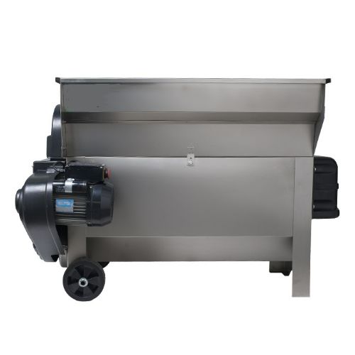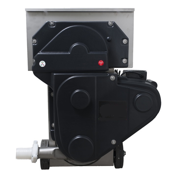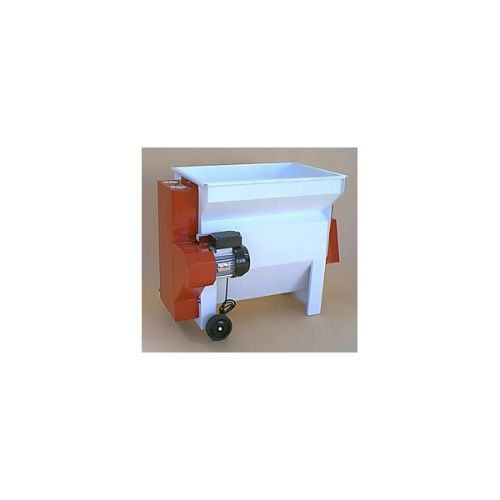 Despalilladora con bomba centrífuga. Funcionamiento semicentrífugo. La bomba permite llevar el mosto y la uva despalillada hasta una distancia de 10 mts y una altura máxima de 4 mts. Tubo de salida: 50mm. Con parada de emergencia y pretolva de 40cm según normas CE. Versión “A” la despalilladora se abre por medio de dos bisagras por la mitad quedando al descubierto la despalilladora. 220V.