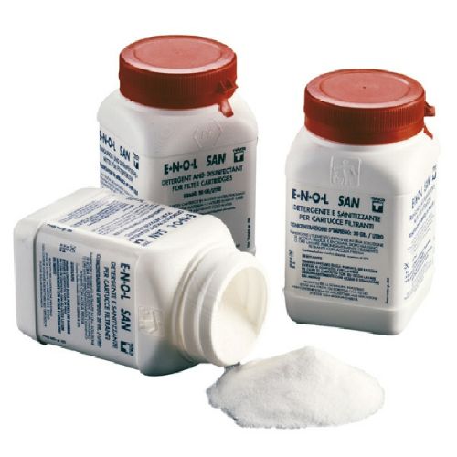 Enolsan es un polvo a base de cloro diseñado para limpiar y desinfectar los cartuchos de fibra de vidrio. Esto evita la formación de mohos y bacterias que podrían poner en peligro la conservación del producto envasado.
