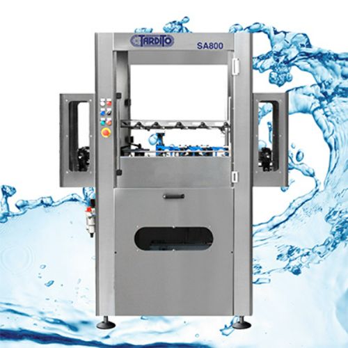Enjuagadora automática mod. SA800-SA800/6 de tipo lineal, con carga y descarga automática. Funciona con el sistema de inyección de agua desechable.