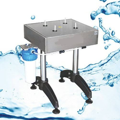 Enjuagadora/sopladora manual con 2 boquillas de aire y 2 boquillas de agua diseñada para enjuagar y soplar botellas y envases vacíos antes de llenarlos. También se puede usar para soplar nitrógeno.