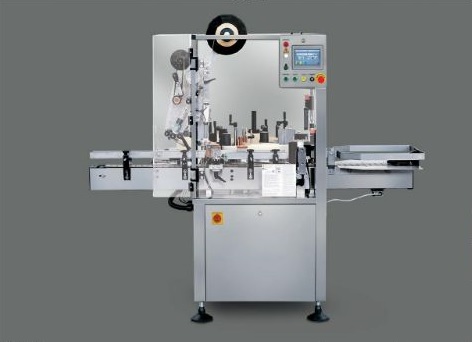 Etiquetadora para aplicación en autoadhesivo de etiqueta y contraetiqueta sobre botella redonda y collarín.