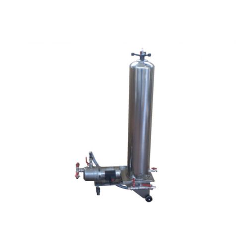Especificaciones para la filtración con tierras: La filtración se realiza mediante un saco de poliester que soporta coadyuvantes como las tierras de filtración. Particularmente indicado para el devastado de vinos.