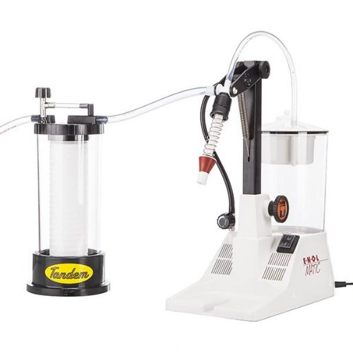 El portafiltro Tandem funciona con la llenadora Enolmatic y los cartuchos de filtro. Gracias a este conjunto (Enolmatic y tándem) el líquido es aspirado, filtrado y embotellado en una sola operación, con la máxima higiene, sin desperdicio y sin alterar las características organolépticas del producto.