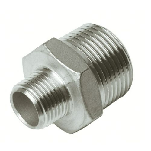 Reducción macho-macho rosca gas. En acero inox.