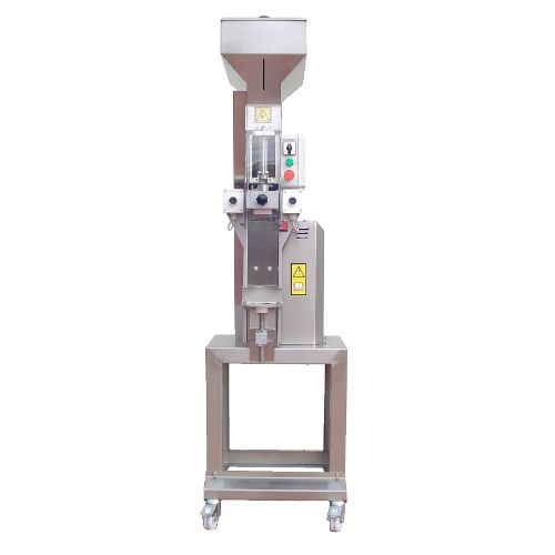 Colocar la botella en el plano de apoyo, dejar la botella y pulsar los botones de accionamiento. La máquina efectúa automáticamente el ciclo de taponado. Cuando el ciclo ha terminado y la botella ha sido taponada, quitar la botella y colocar una nueva.